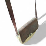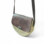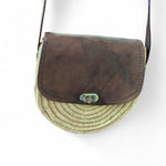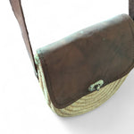 Stylish handwoven straw crossbody bag with genuine leather flap, handcrafted by Moroccan artisans. Perfect for everyday wear or travel, this natural piece blends rustic charm with modern elegance.