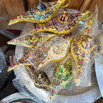 Grant your customers a wish for enchanting decor with this stunning, Aladdin-style genie lamp. Inspired by the timeless tales of One Thousand and One Nights, this piece is crafted to capture the imagination. Its intricate details, vibrant colors, and classic silhouette make it a magical find for any boutique specializing in unique gifts, fantasy items, or globally-inspired home accents.
